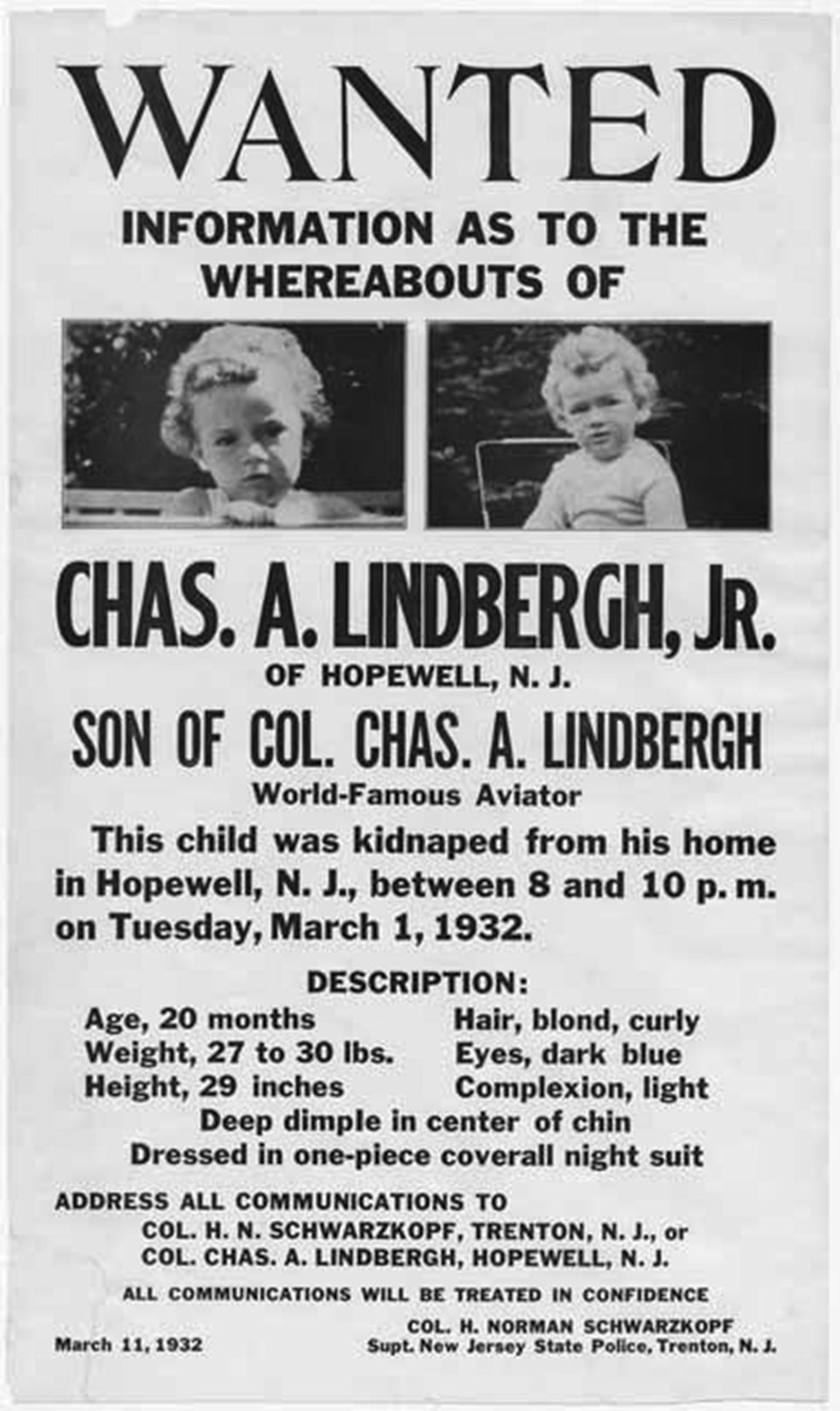 El primogénito de Charles Lindbergh y Anne Morrow se hizo tristemente famoso a los 20 meses de vida. El 1 de marzo de 1932 fue arrancado de su cuna en su casa de Hopewell (arriba), de donde lo sacaron a través de una ventana con una escalera. Para liberarlo, los secuestradores exigieron a sus padres 50.000 dólares. Algunas fuentes culparon a la banda de Al Capone. El mafioso, preso en Chicago, dijo que estaba «seguro» de que podía rescatarlo si lo dejaban en libertad. El caso apareció en todos los periódicos de la época.