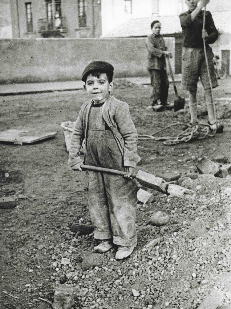 El niño de esta imagen trabaja en la construcción en el año 1948. Hasta 1995 aún había niños empleados en la construcción en nuestro país: unos 50.000 según el informe del sindicato UGT El trabajo infantil en España, que cifraba en 700.000 el número de trabajadores menores de edad. | Foto: Valentín Vega