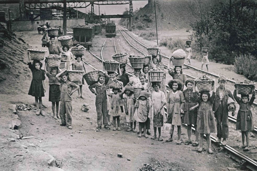 En las cuencas mineras asturianas había niños trabajando de forma habitual hasta bien avanzado el siglo XX, como este grupo de menores recogiendo carbón en las vías del tren en Asturias en 1945. A estos niños, cuentan, se los reconocía cuando salían de su pueblo porque olían a humo, lo que también los estigmatizaba. | Foto: Valentín Vega