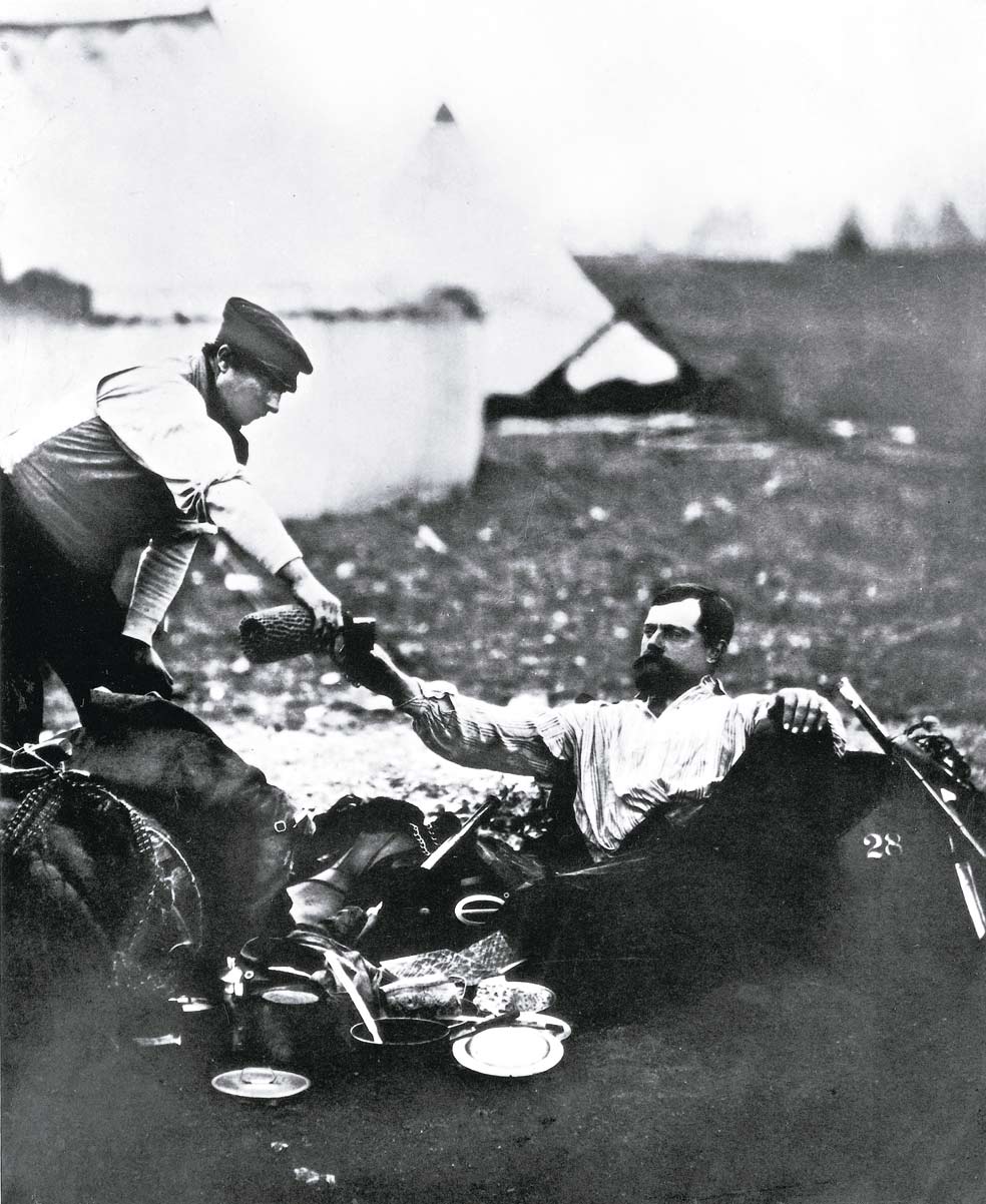 Así empezaba el día este teniente coronel antes de la batalla. Roger Fenton, pionero de la fotografía bélica, tomó esta imagen en 1855. Financiado por el Gobierno británico, su reportaje mostraba la cara amable del conflicto para elevar la moral de la ciudadanía.