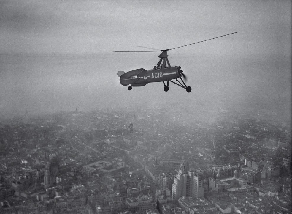 El autogiro de De la Cierva sobrevuela Madrid en 1934. Marín dispara desde otro avión. Subirse a uno exigía tanta valentía como pilotarlo. Realizó la ... primera toma aérea en España en 1913, solo diez años después de que los hermanos Wright inventaran la aviación y a solo tres del primer vuelo en nuestro país, realizado por el francés Jules Mamet en 1910 y que Marín también registró con su cámara. Realizó, además, tomas aéreas en Barcelona, Valencia, Segovia, Toledo y Granada.