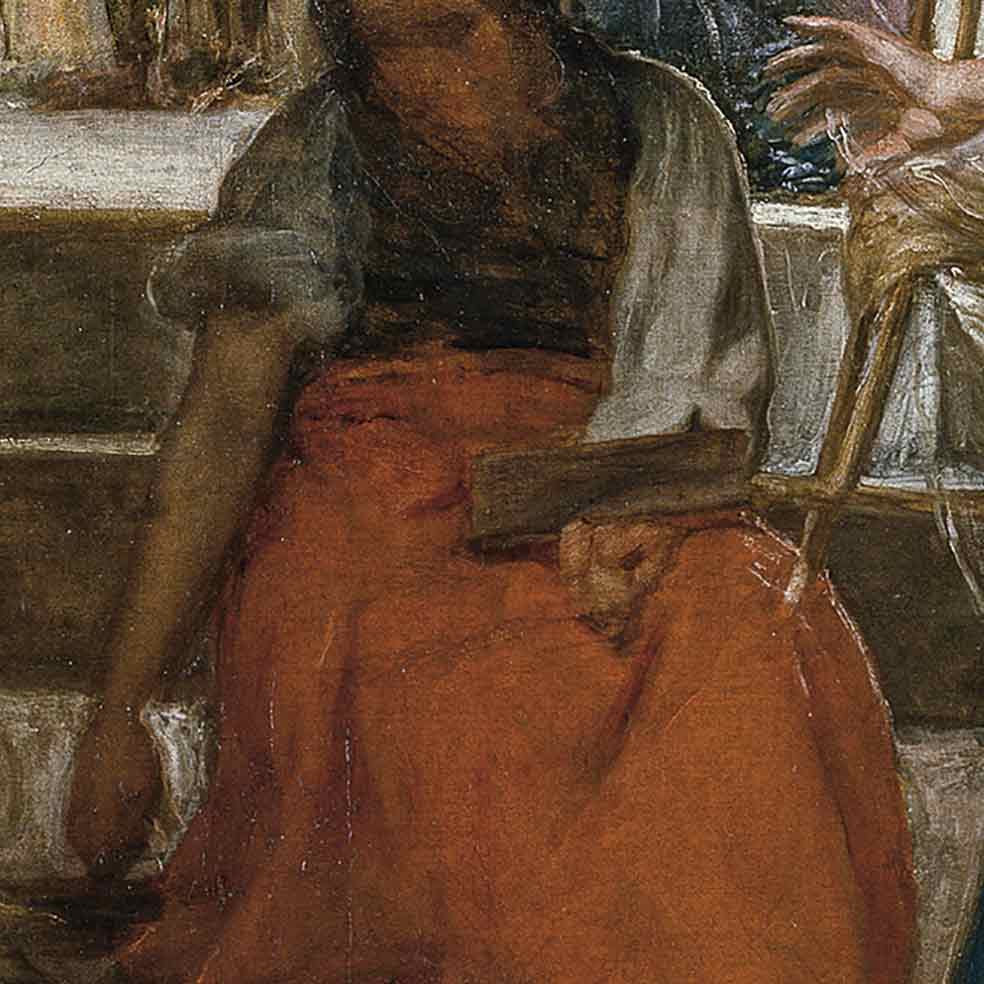 La luz tiene un papel muy importante. El foco entra por un ventanal que no está a la vista situado a la izquierda del fondo. El rayo de luz atraviesa toda la composición y se refleja en la blusa blanca de la joven de la derecha. Esta luz aporta realismo y genera una sensación de escenificación teatral.