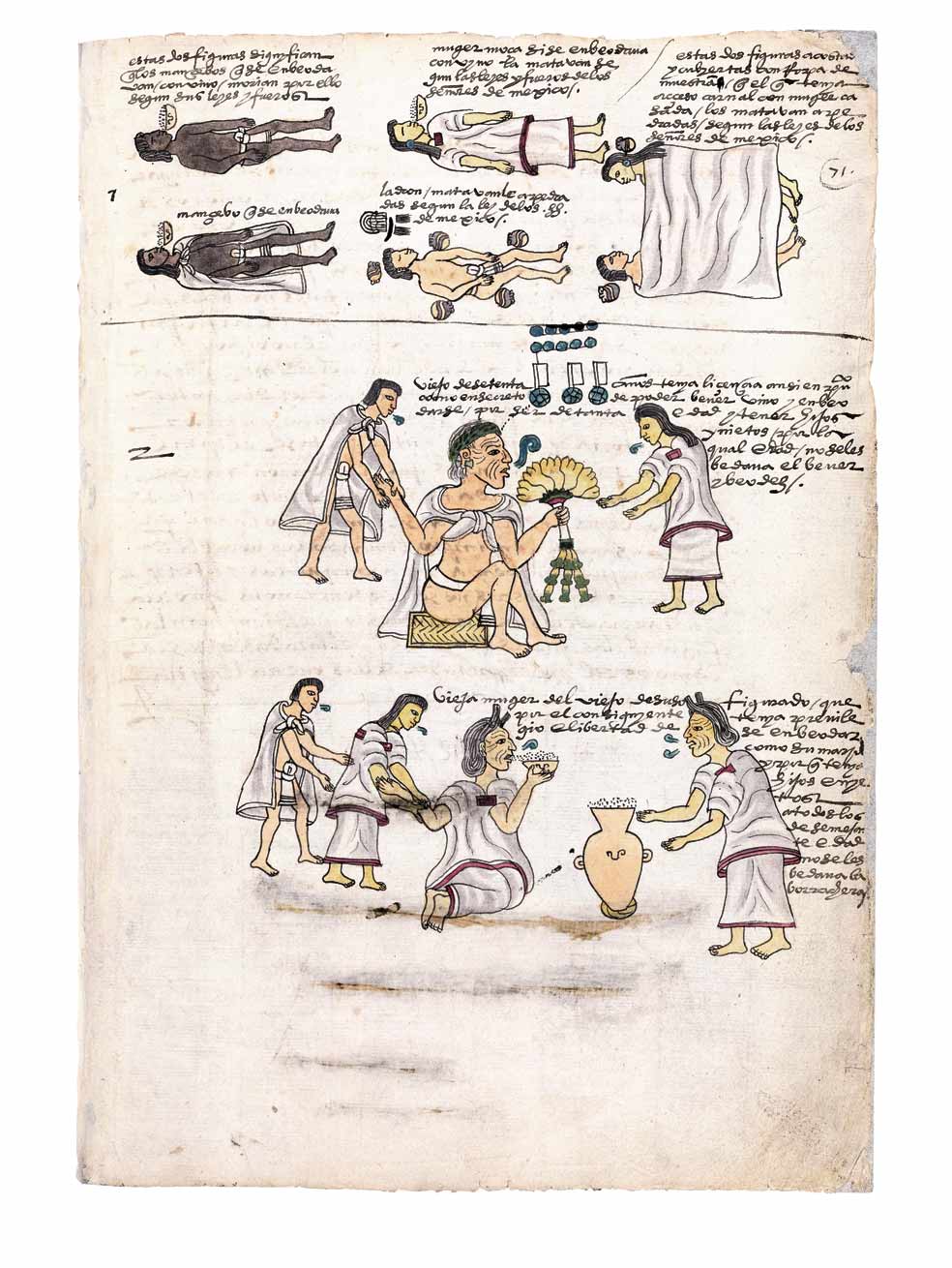 La lectura se hacía en voz alta y ante un público atento y respetuoso, pues en la educación azteca el alboroto o la falta de atención eran sancionados, a veces con sadismo, clavando espinas u obligando al infractor a aspirar el humo de una fogata donde se asaban chiles. Pero los españoles pensaron que sería difícil escenificarlo y decidieron rehacerlo para facilitar su lectura y añadir anotaciones a los dibujos; y les quedó un tebeo de 71 folios.