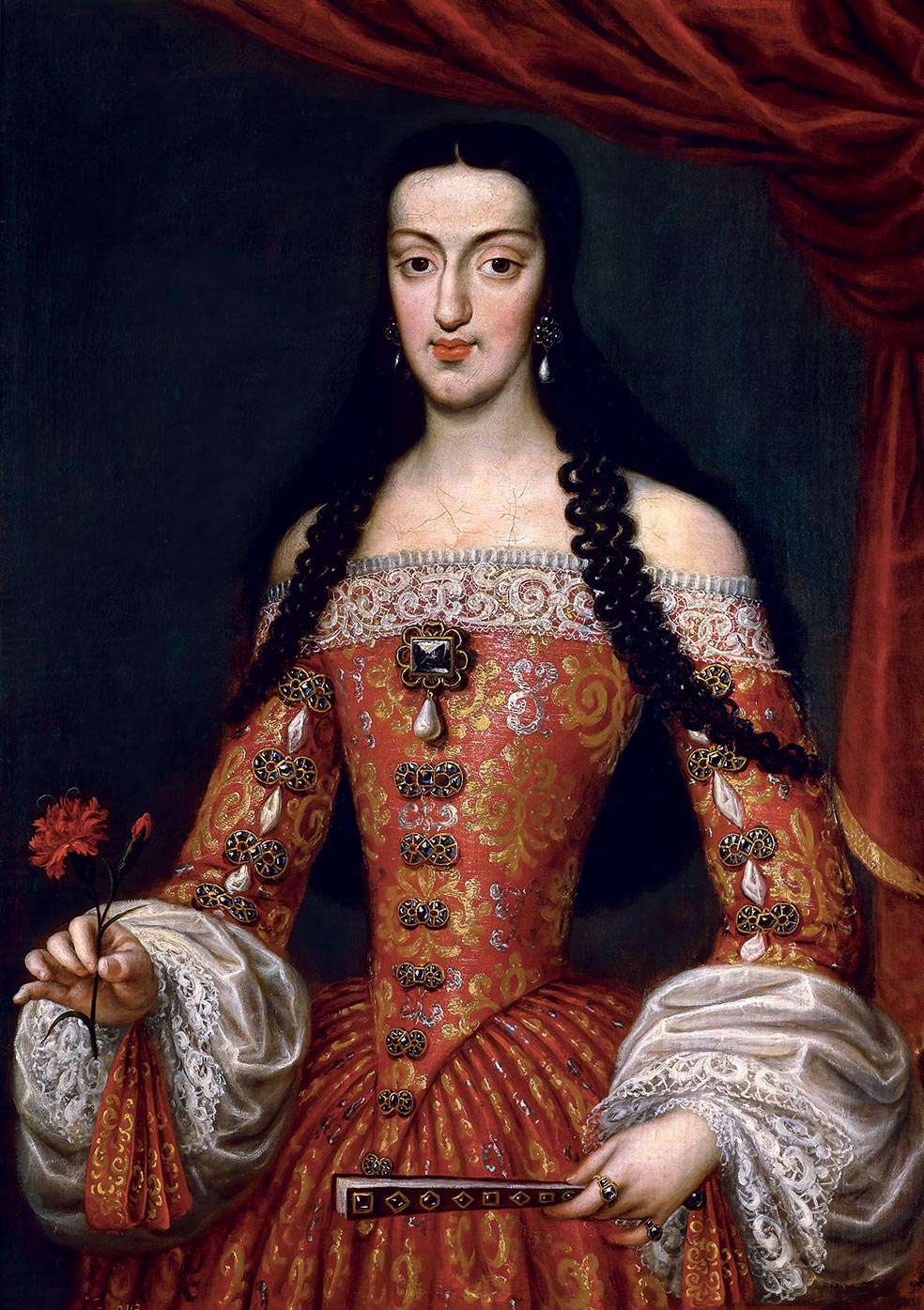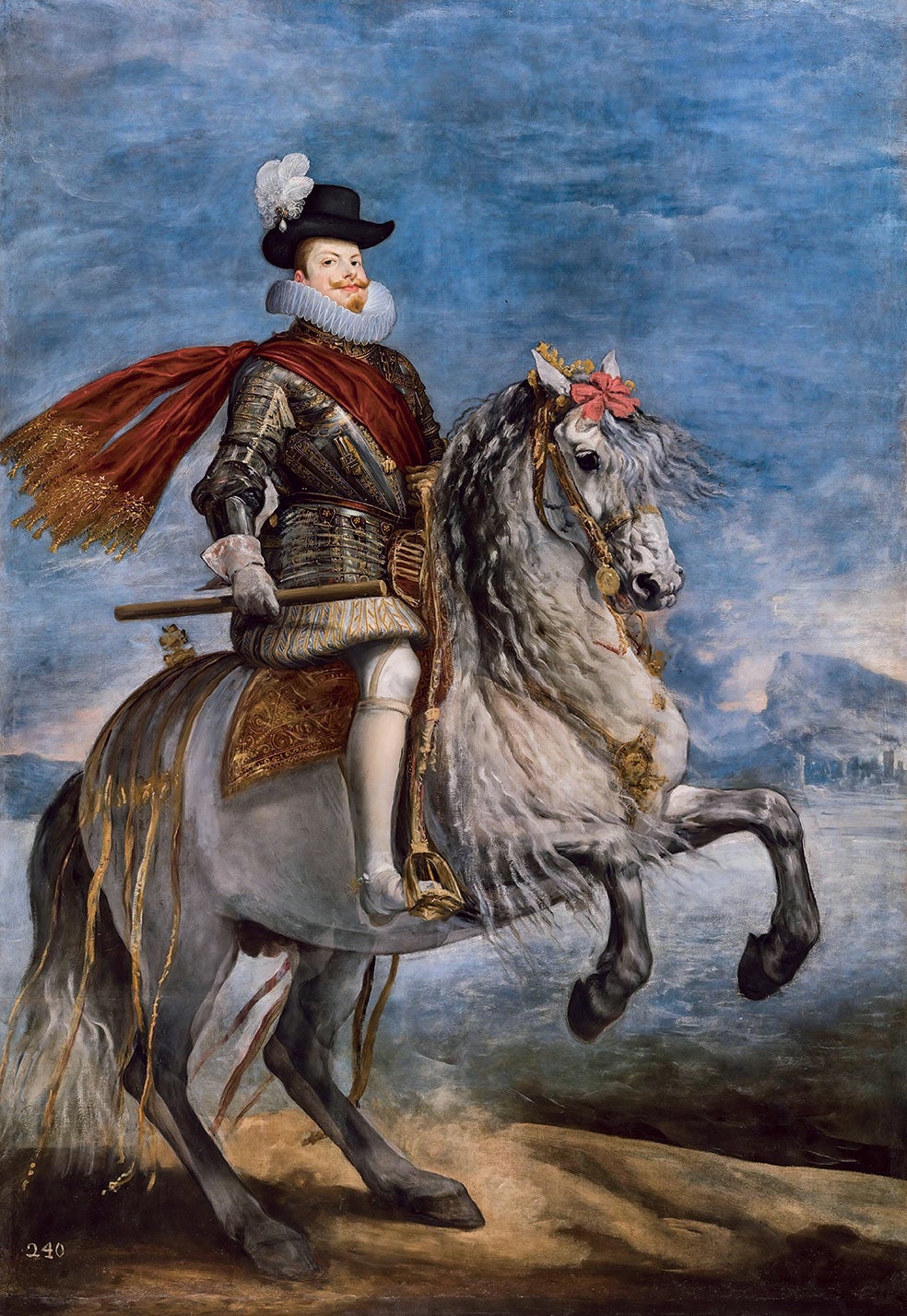 Felipe III aparece en el retrato ecuestre de Velázquez con la Peregrina en el sombrero. Su mujer, Margarita de Austria, también se retrató con la perla, pero ella la llevaba prendida de un broche o joyel con el impresionante diamante El Estanque, toda una demostración de poderío.