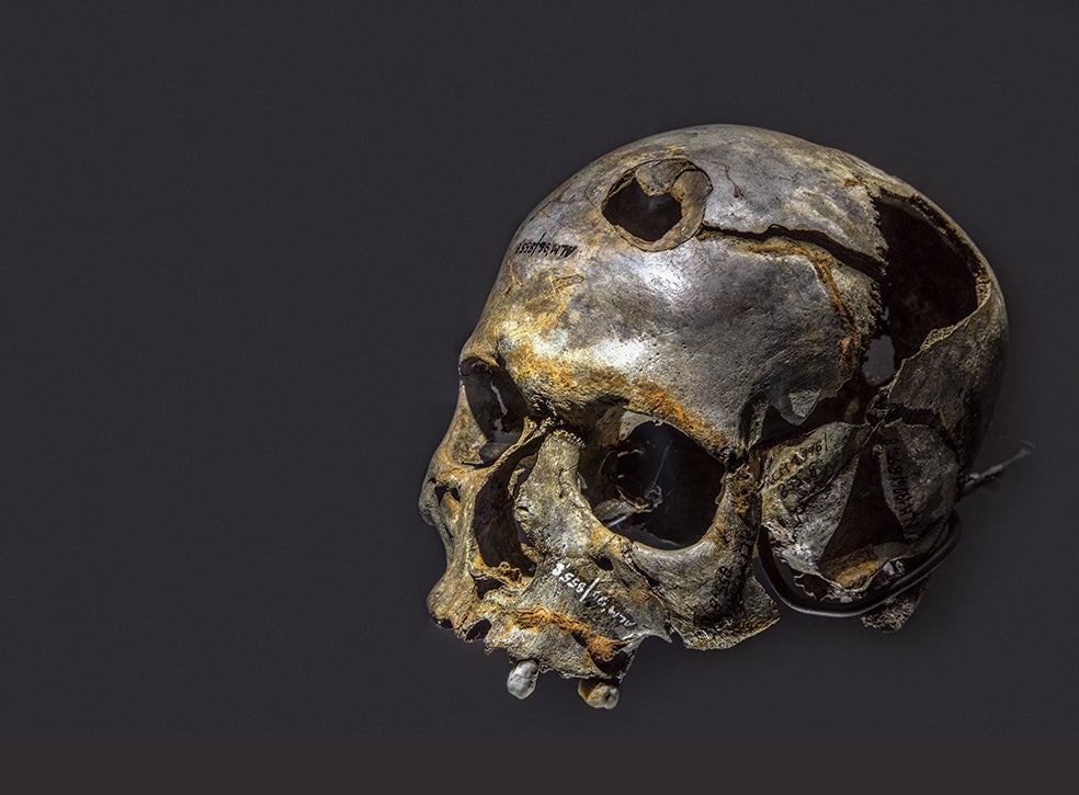 → ‘A quemarropa’: las puntas de flecha, de bronce y sílex, lanzadas a corta distancia, atravesaron cráneos y huesos. Se han encontrado puntas incrustadas en varias piezas.