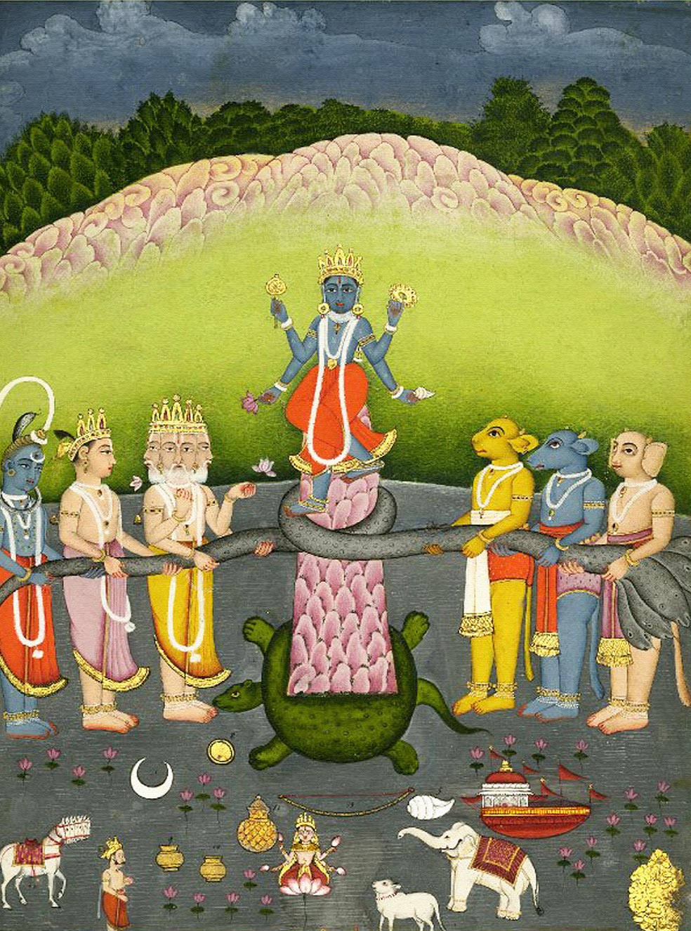 Para los hinduistas, las cobras son sagradas. Según una antigua leyenda, una cobra salvó la vida al dios creador, Brahma, protegiéndolo de los rayos del Sol con el ensanchamiento de la cabeza característico de estas serpientes. En la iconografía religiosa hindú, la cobra se asocia a Brahma, Vishnú, Shiva y Kali.