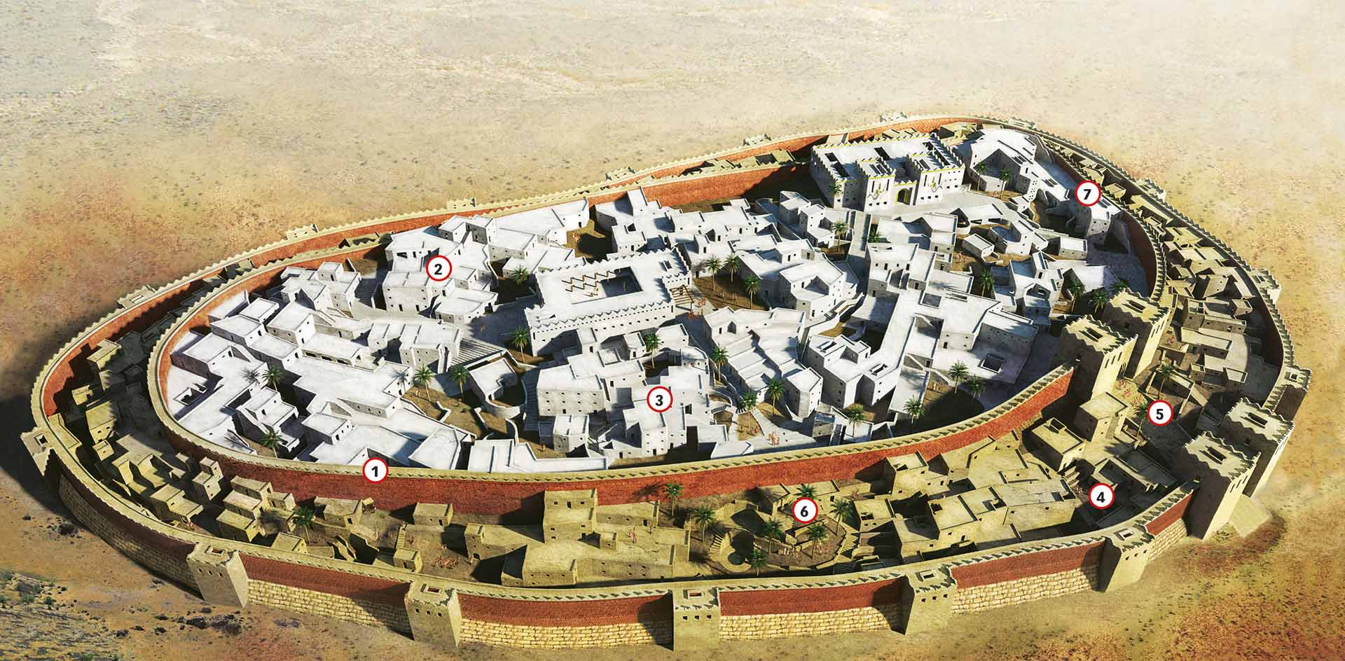 Jericó (en la ilustración de arriba) reclama el título de primera ciudad por su antigüedad (11.000 años), aunque su estructura era entonces muy limitada, más de aldea. Lo que sí la define es haber sido después la primera ciudad amurallada. La riqueza de sus asentamientos atraía la codicia de las tribus nómadas, lo cual derivó en la necesidad de levantar muros.