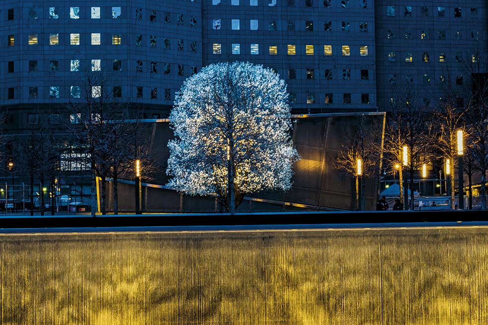 El peral de Callery llegó a América en los años cincuenta desde China y Vietnam. Pronto se hizo el rey de las calles por su gran capacidad de resistencia y adaptación a climas y terrenos diversos. Es duro de pelar. Este ejemplar lo encontraron bajo los escombros de las Torres Gemelas. Estaba muy dañado, pero conservaba brotes verdes. Ahora está esplendoroso.