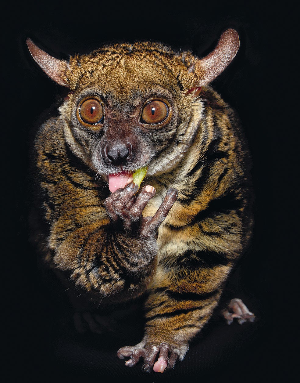 El loris lento pigmeo el animal invisible Los grandes ojos especializados del loris lento pigmeo le permiten ver en la oscuridad. La noche protege y esconde a estos animales hasta tal punto que en 2010 se redescubrió en Sri Lanka una especie de loris que se creía extinta desde hacía 60 años, y en 2012 se halló una nueva en Borneo.