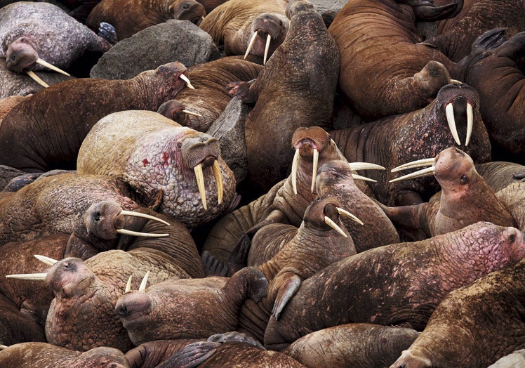 Hace ya cerca de dos semanas que Maksim y yo aguardamos la llegada de miles de morsas que descienden, cada año, desde el hielo del ... Ártico. Llegan hasta aquí, la bahía rusa del cabo de Serdtse-Kamen, extenuadas. El calentamiento del planeta ha deshecho las plataformas de hielo que les servían de descanso durante su viaje. Una vez en la playa, sin trozos de hielo en los que repartirse, se hacinan en la arena, lo que tiene terribles consecuencias. Las estampidas de pánico que provocan los depredadores, sean los hombres o los osos, causan la muerte de muchas de ellas, sobre todo de las jóvenes y las hembras preñadas, que mueren aplastadas. Al no poder plegar sus grandes colmillos, otras muchas fallecen con el cuello partido. Hasta más de 10.000 morsas pueden morir de esta forma, como ocurrió en 2007.