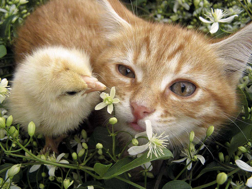 ¿Se imagina juntos a un gato y un pollito? ¿Y a un macaco y una paloma como los de la imagen? Pues en la naturaleza a veces se producen estos milagros, para asombro de científicos y expertos. La causa parece estar en la combinación del instinto maternal de los que pierden a sus crías y en la inocencia de estas al sentirse solas.