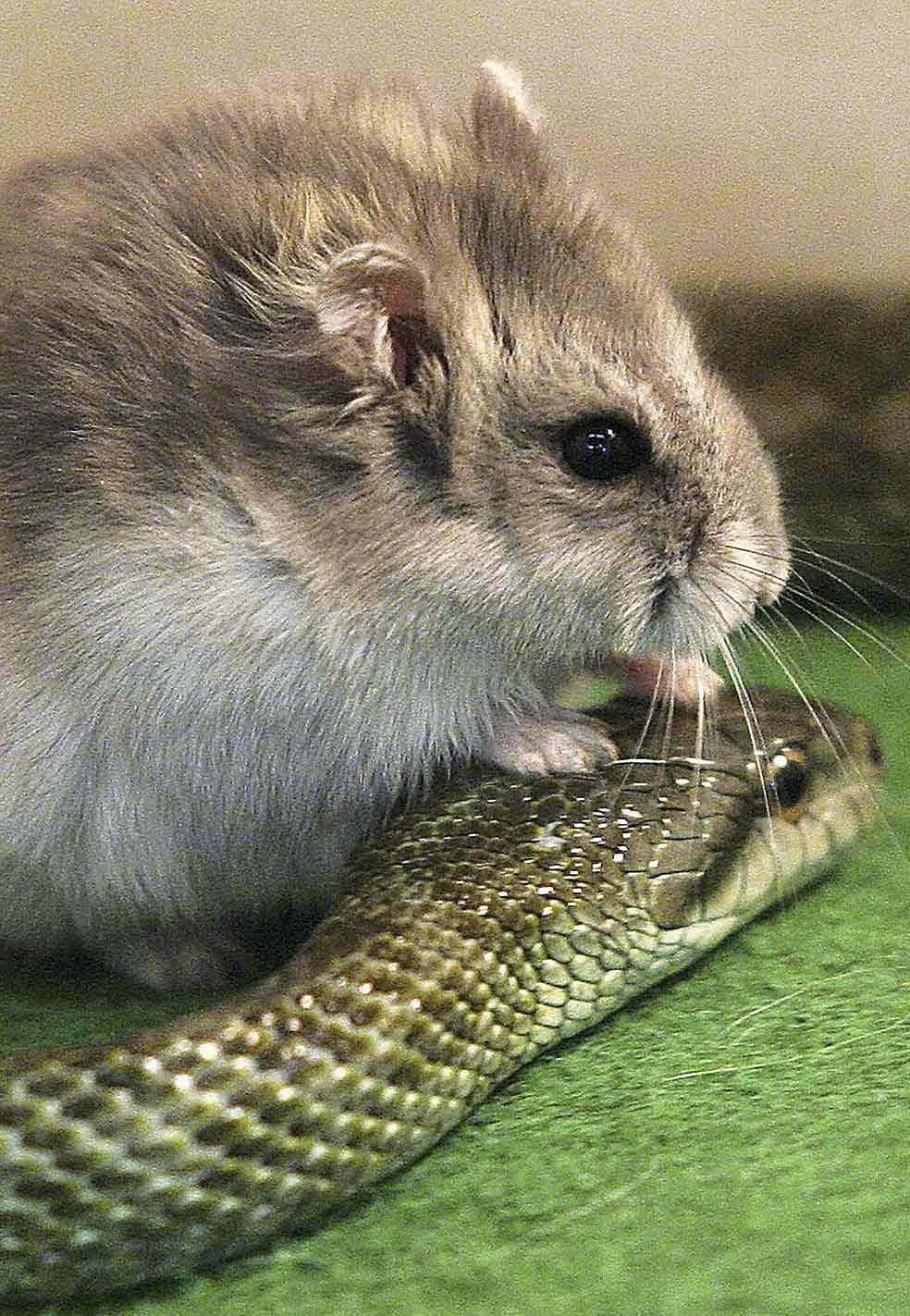 Aochan, la serpiente, vivía en un zoo y llevaba dos semanas sin comer, así que su cuidador le sirvió un hámster. El roedor, de nombre Gohan, empezó a corretear alrededor del reptil, pero Aochan no dio muestras de que se le abriera el apetito, más bien al contrario: ambos animales se convirtieron en amigos y en la mayor atracción del zoo.