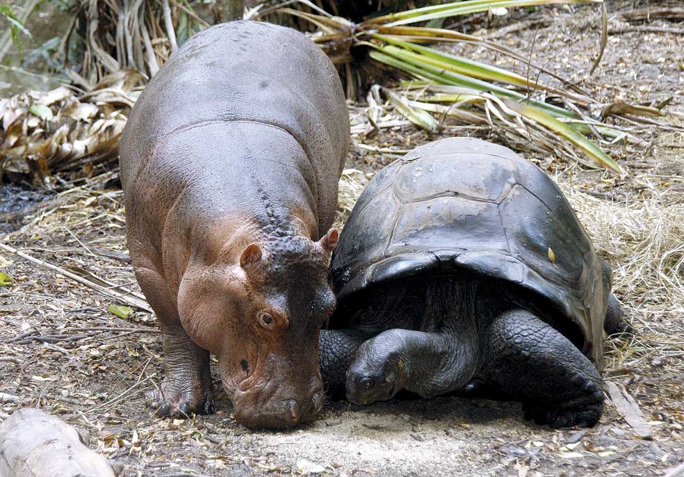Tras el gran tsunami de 2004, una reserva animal recogió a Owen, esta cría de hipopótamo. No tardó en acercarse a la tortuga Mzee, luego empezó a comer de la misma hierba y adoptó su patrón de sueño. A menudo, Mzee se apoyaba en el vientre de Owen y dejaba que este le lamiera la cara.