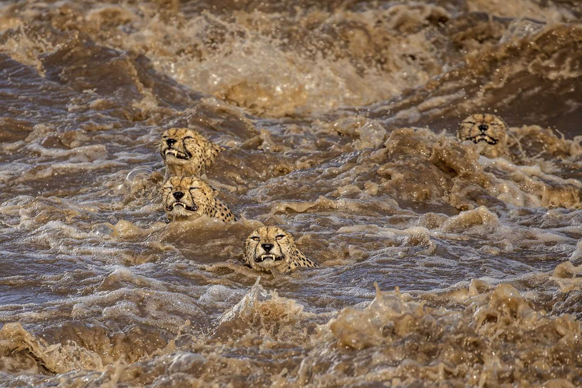 «Mi principal razón para regresar a Kenia eran los cinco guepardos machos encontrados en la ciudad de Bora, conocidos como los Tano Bora. Los había fotografiado ya antes, pero quería volver a hacerlo». Con lo que no contaba, reconoce, era con tan adversas condiciones climáticas: «Comenzó una lluvia incesante que desbordó las orillas del río Mara e inundó todos los pueblos. Fue un desastre total».