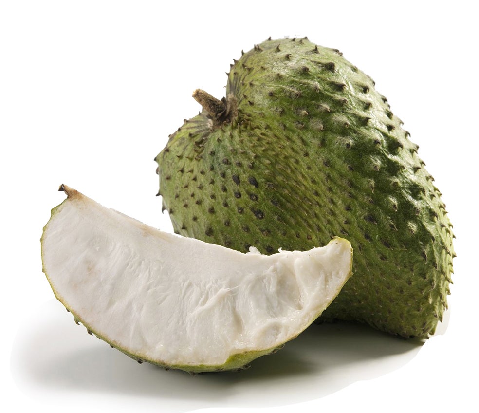 Es grande (de entre 10 y 35 cm de longitud), cubierta de espinas blandas y con una pulpa comestible. Se le atribuyen propiedades anticancerígenas, pero no se han demostrado científicamente.