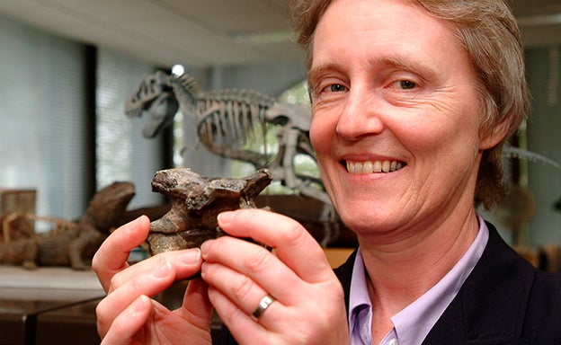 En realidad los huesos fosilizados de los Pendraig se recogieron en la cantera Pant-y-Ffynnon, al sur de Gales, en 1950, pero estuvieron guardados junto con otras muestras durante décadas. Hasta que la paleóntologa Angela Milner (en la foto), que ya en 1986 describió el dinosaurio Baryony, se puso a estudiarlos con atención.