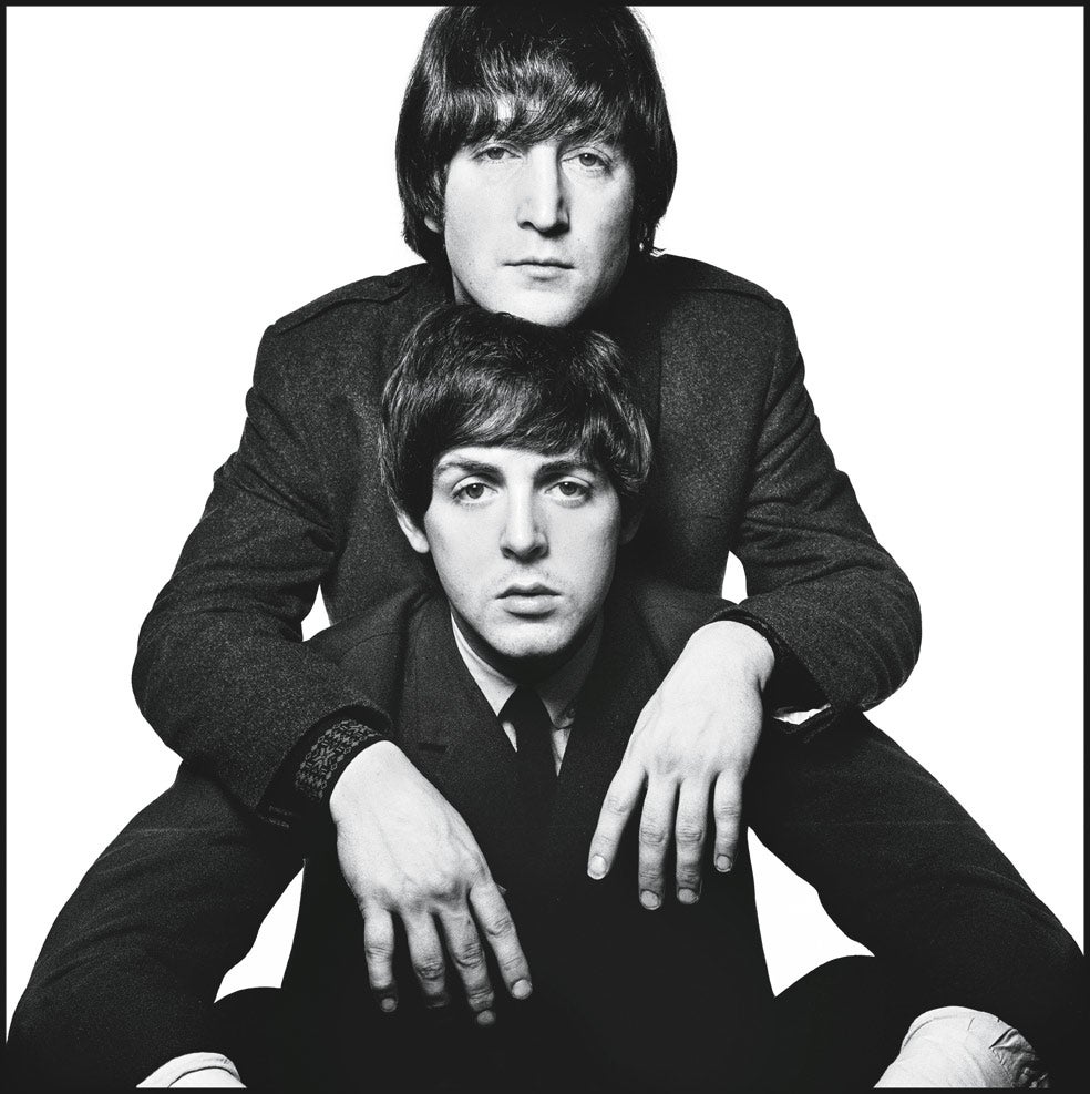 El retrato por parejas es una de las especialidades de Bailey. John Lennon se apoya aquí en Paul McCartney como si formaran un sólido edificio. La imagen, de 1965, es toda una metáfora porque ese año marcó la madurez musical del dúo, alma de los Beatles, con discos como Help! y Rubber soul. Fue el año, por cierto, de sus dos conciertos en España.