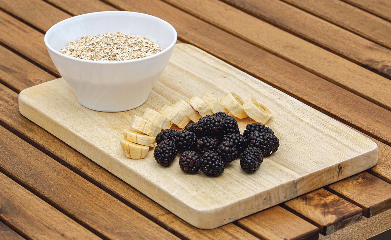 «El clásico porridge de avena, con plátanos y arándanos. Un café, tostada de pan integral con tomate cortado en rodajas y pavo que tenga 97% de pavo».
