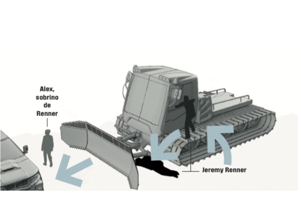 La quitanieves empezó a avanzar por su cuenta. Renner reaccionó impulsivamente y se encaramó a la rueda de oruga en movimiento para tratar de alcanzar la cabina y detener el vehículo, que se dirigía contra su sobrino.
