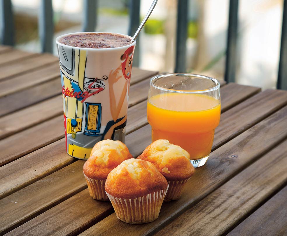 «En casa: zumo de naranja, un colacao y unas magdalenas. En hotel: zumo de naranja y huevos fritos con beicon. En Madrid: un chocolate con churros».