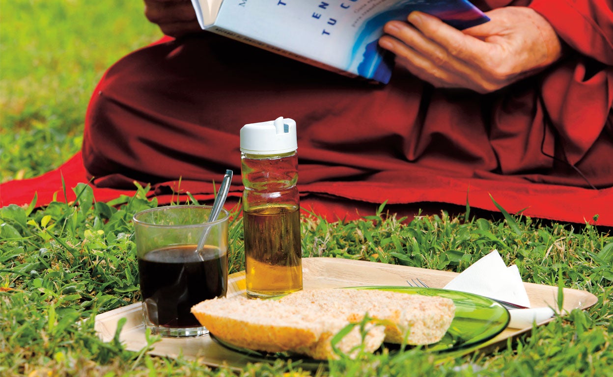 «Café descafeinado y una tostada con aceite de oliva. En el monasterio somos ovolactovegetarianos. Pero, si mi madre me pone jamón ibérico, lo tomo...» [ríe].