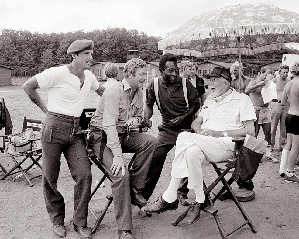 «Evasión o victoria (1981) la filmamos en Budapest. Y el elenco era increíble: Bobby Moore, Pelé, Ossie Ardiles y, en la portería, Sylvester Stallone. Toda una experiencia. Sly era muy divertido, aunque también estaba trabajando en la tercera película de Rocky, así que solía escribir el guion de Rocky en su habitación cuando se suponía que estaba aprendiendo sus diálogos. Estaba comprometido con su régimen de culturismo para estar en plena forma cuando lo filmaran boxeando. Terminábamos una toma y empezaba a hacer flexiones o vueltas alrededor de la cancha. Estaba en los primeros días de su estrellato y podría haber sido una pesadilla, pero nada de eso. Teníamos en común nuestras raíces de clase trabajadora: él era el tipo de Nueva York al que todo el mundo había descartado hasta que escribió esta película de boxeo y ganó el Oscar a la mejor película. Tenía esa determinación, pero lo que me impresionó fue lo tranquilo que era. Es la combinación correcta».
