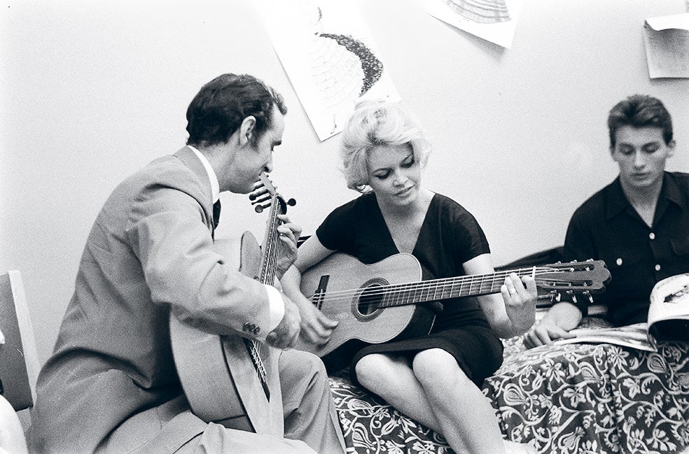 Además de actuar en 28 películas, Bardot interpretó más de 80 canciones a lo largo de sus 21 años de carrera. Tocaba la guitarra, aunque ... no al nivel de los maestros que la instruían en Sevilla.