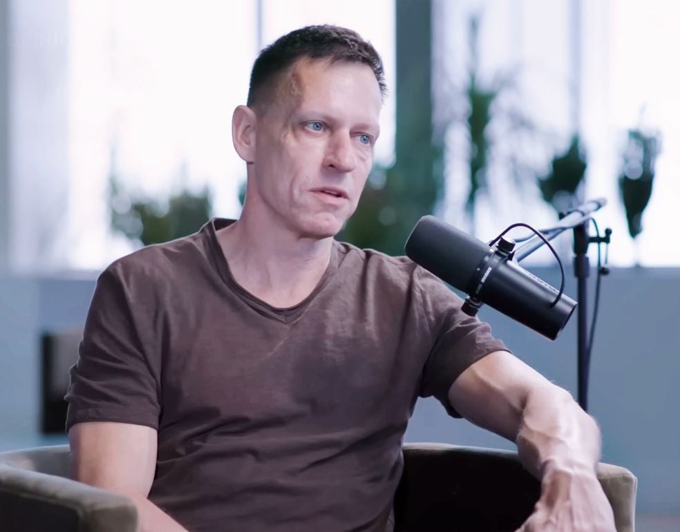 El entrevistador le comenta que hay gente que cree en otro tipo de inmortalidad: la fusión con las máquinas, el transhumanismo. Y que ven precisamente la IA como una herramienta para trascender nuestros cuerpos mortales, con el riesgo evidente de que el ser humano quede sumido en la insignificancia y la extinción. Le pregunta a Thiel: «Tú preferirías que la raza humana perdurase, ¿no?». Thiel duda, duda mucho, segundos de silencio. El periodista insiste: «¿Debería la raza humana sobrevivir?». «Sí, pero...», responde Thiel. «Pero también me gustaría ver estos problemas (el deterioro cognitivo y la mortalidad) radicalmente resueltos. Transhumanismo es esta radical transformación en la que el cuerpo mortal humano se transforma en un cuerpo inmortal», dice. Y eso le atrae. Le atrae mucho.