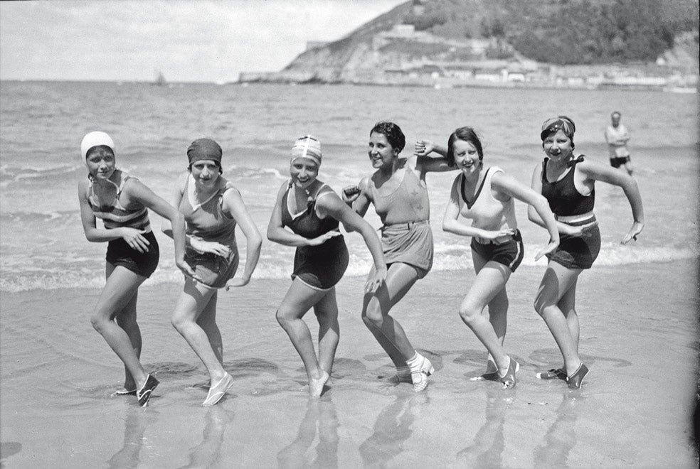 Martín recorría las playas y los barrios buscando a veces tan solo simpáticos testimonios gráficos, como estas bañistas en la Concha. Sus instantáneas se publicaban en prácticamente todos los periódicos vascos de la época.