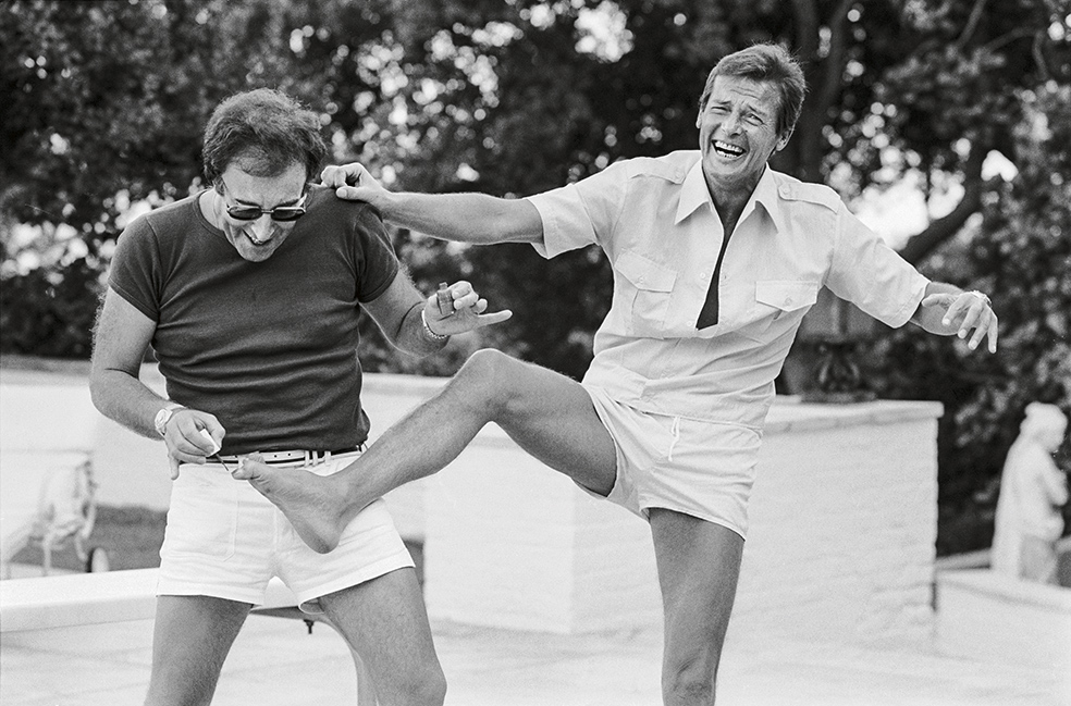 «Peter Sellers era un hombre muy complicado. Lo conocí muy bien a lo largo de los altibajos de su vida. Éramos buenos amigos. Peter nunca creyó de verdad en sí mismo, y eso que tenía un enorme talento. Era un dotado actor, escritor, cantante y también fotógrafo. Pero luchaba contra sus propios demonios. Con todo, pasamos grandes momentos. Aquí con Roger Moore, a quien intenta pintar las uñas de los pies. Cuando los demonios estaban bajo control, Peter era el tipo más divertido del mundo».